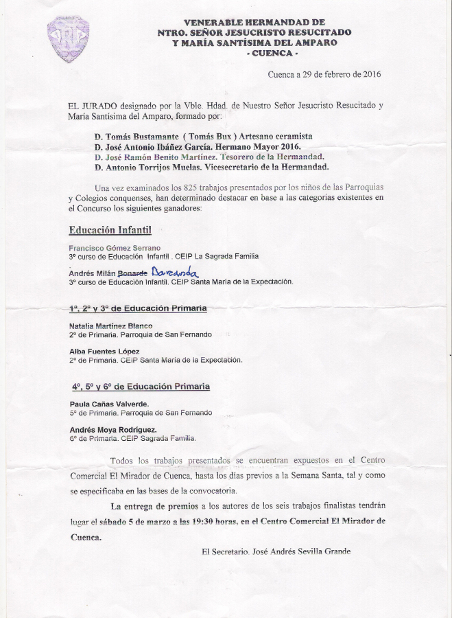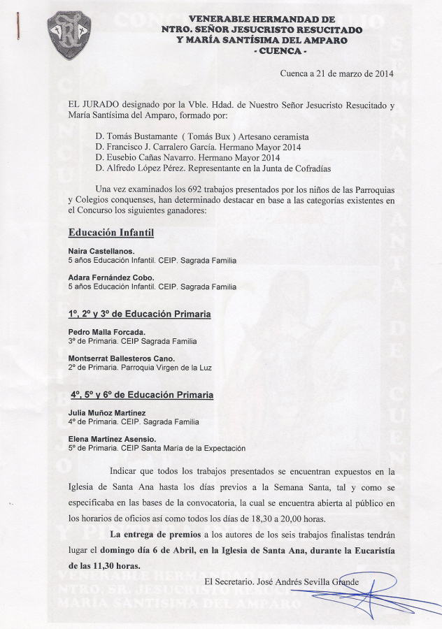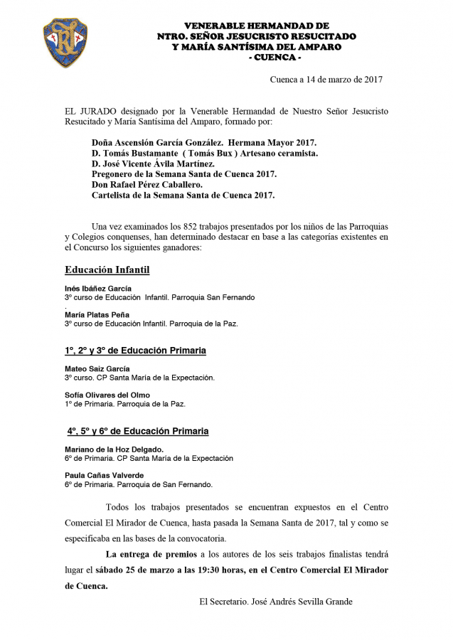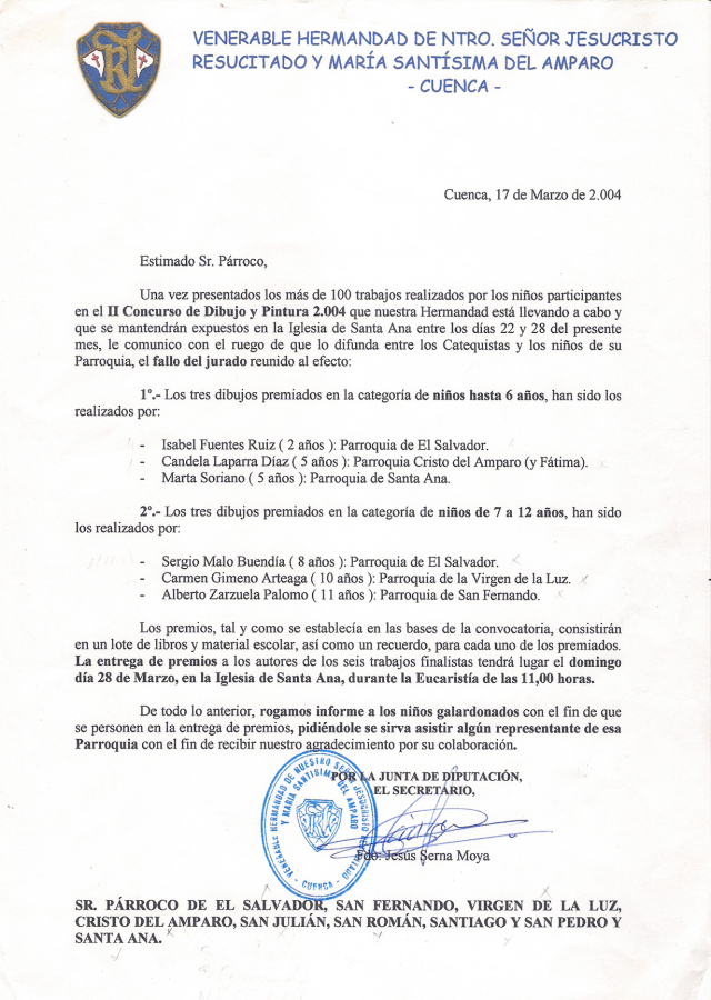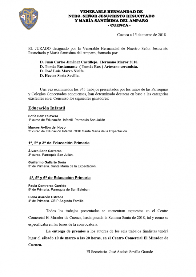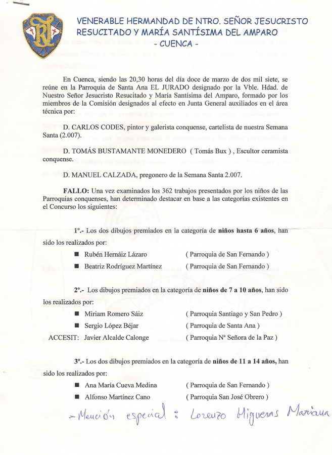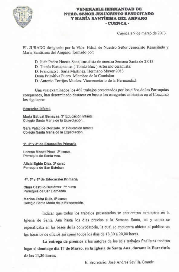 Sin duda alguna, el Concurso de Dibujo y Pintura de la Hermandad del Resucitado, como vulgarmente se conoce, se ha consolidado entre los niños que asisten a nuestras Parroquias, lo que ha cumplido con creces las expectativas que aquellos Hermanos allá por el año 2.002 se propusieron con la primera edición.