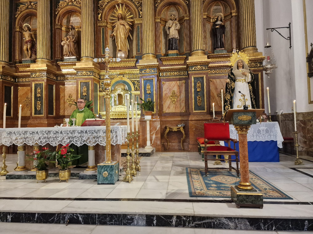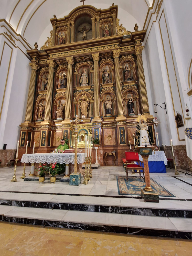 Agradecemos a la parroquia de El Salvador su continua colaboración así como a la V.H. de Nuestra Señora de los Dolores y las Santas Marías quienes han prestado para la celebración los candelabros que lucía el altar.