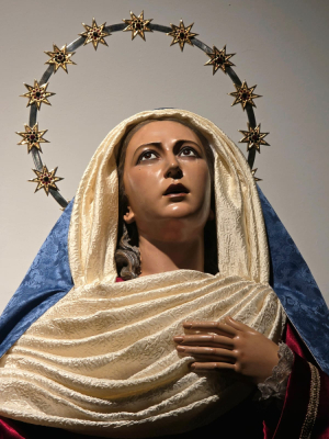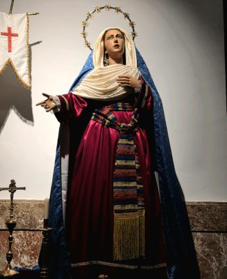 Como ya es habitual en nuestra corporación, María Santísima del Amparo adecúa su ropaje al tiempo litúrgico en el que nos encontramos. En esta ocasión, ante una nueva Cuaresma, nuestra imagen mariana viste de hebrea con recordatorio, como preparación del camino cuaresmal hasta la Resurrección de Cristo.