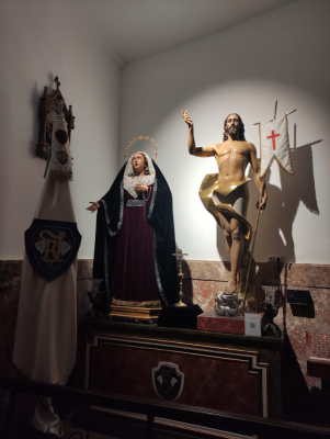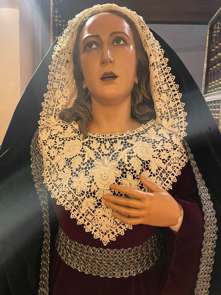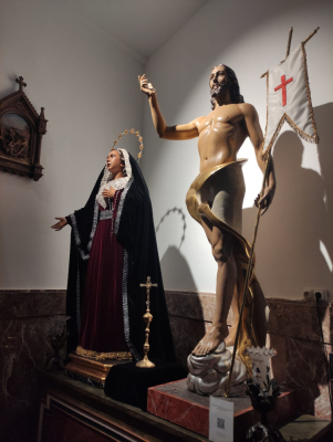 Durante este mes de noviembre, nuestra madre María Santísima del Amparo, nos espera en su altar vestida de luto como requiere este mes dedicado, por un lado, al recuerdo de aquellos hermanos de nuestra corporación nazarena que nos han precedido ya en el camino de la Resurrección, y por otro a la alegría del culto a todos aquellos Santos y Santas que nos enseñan el camino para alcanzar la Vida Eterna en la presencia de Dios. Os animamos a presentar a María Santísima del Amparo todas vuestras alegrías, preocupaciones, desvelos...a compartir con Ella un ratito de oración en estos días otoñales con la esperanza de sentirnos abrazados por su amor infinito.