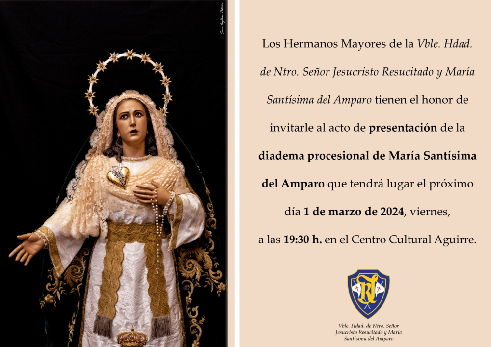 Por fin, tras casi un año de espera, este viernes, 1 de marzo, a las 19.30 h. en el C.C. Aguirre nuestra hermandad presentó a la comunidad nazarena conquense la diadema procesional para María Santísima del Amparo.