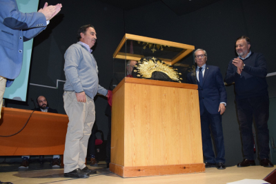 Tras una breve alocución en la que el señor secretario recordó la historia de la hermandad y las vicisitudes hasta llegar a este día, se procedió al descubrimiento de la diadema por parte de los Hermanos Mayores de la hermandad, D. Jesús Moreno y D. Eduardo García de Julián.