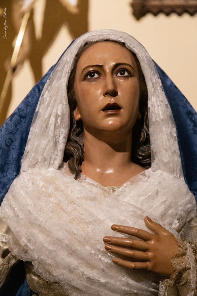 Con la llegada de diciembre, late un cierto aire de esperanza, de alegría... a pesar de la durísima situación que estamos atravesando. Un nuevo tiempo litúrgico conlleva también el ya correspondiente cambio en la imagen de María Santísima del Amparo que, durante este tiempo, lucirá de blanco y azul. No es habitual ver a nuestra Madre vestida de blanco. Gracias a la V.H. de María Santísima de la Esperanza que nos ha prestado la saya blanca y al trabajo exquisito y cariñoso de Miriam Benito y Rafael Murgui, María Santísima del Amparo nos aguarda en su altar especialmente hermosa. Os animamos a, cumpliendo las normas sanitarias vigentes, que os acerquéis hasta la parroquia con el fin de poner a los pies de nuestra Madre vuestros deseos e intenciones.